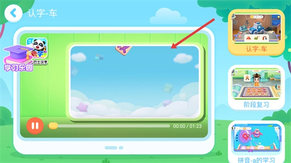 3、在学习模块列表里找到“认字-车”的视频并点击进入,即可开启“车”字的识字学习环节。这个环节借助具象化的场景来关联汉字,能有效降低低龄儿童对汉字的理解难度。