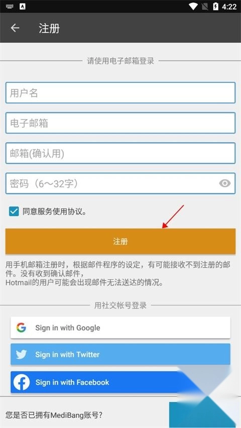 3、填写好注册信息之后点击注册即可。