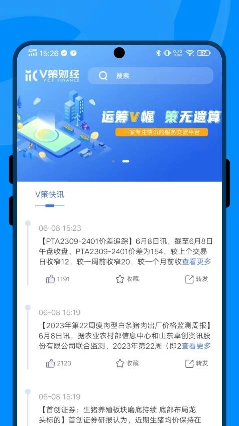 4、支持将各类快讯转发至其他平台,用户可通过分享领取V券;