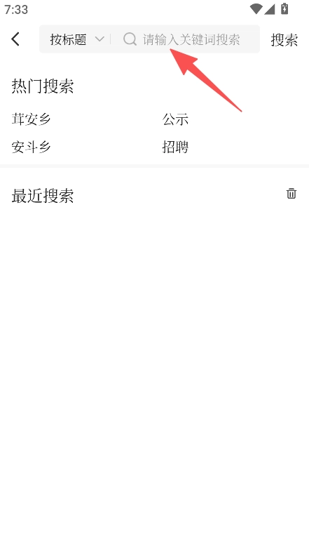 1、进入搜索页,输入关键词(如招聘),点击搜索。