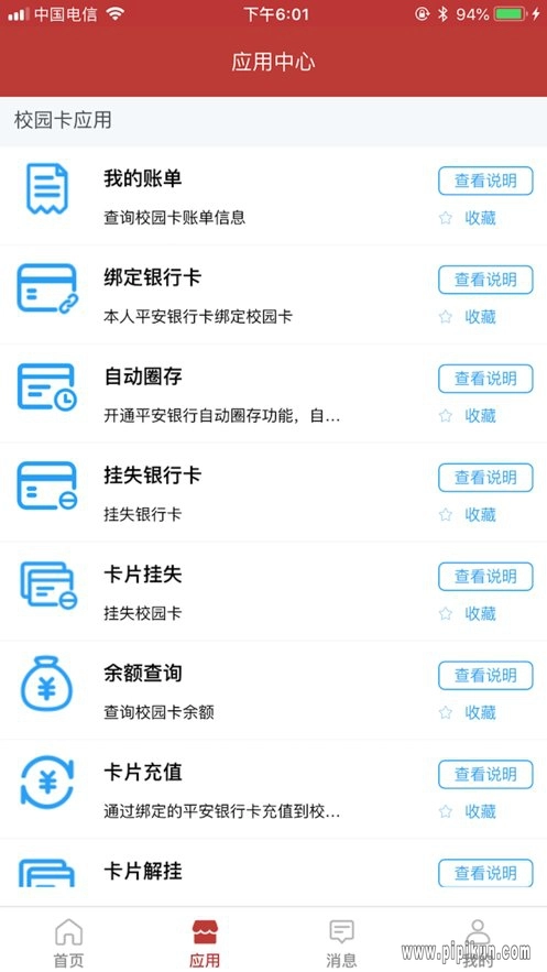 校园卡管理:提供全方位的校园卡服务,涵盖充值、信息查询、账单查询、流水查询、挂失与解挂、失卡招领、校园卡线上申请以及校友注册等功能。