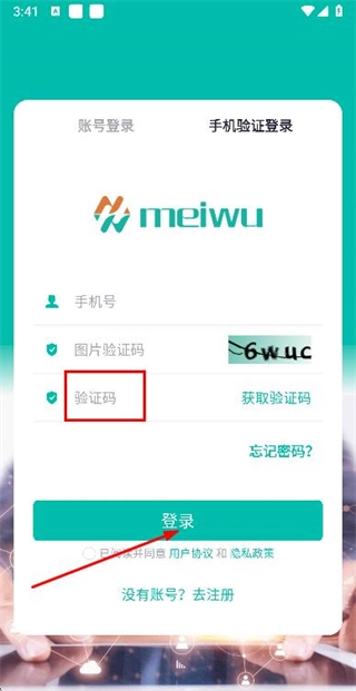 3、在验证码输入框内填入收到的验证码,点击登录按钮,即可完成账号登录流程。