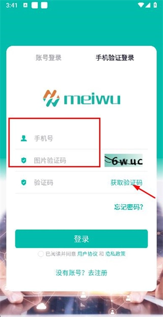 2、在登录页面输入手机号与图片验证码后,点击“获取验证码”按钮。