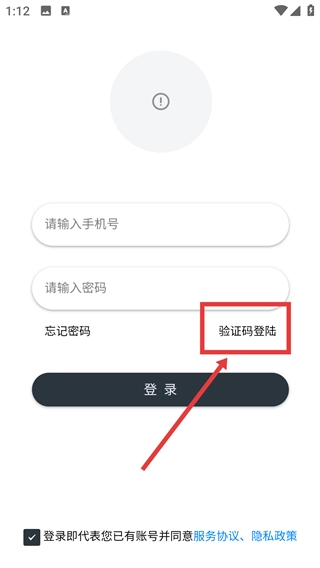 2、在显示“请输入手机号”-“请输入密码”的登录页面,点击“验证码登陆”选项,切换至验证码登录的表单界面。
