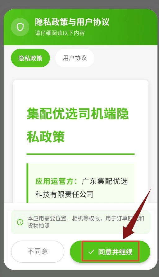 1、首次打开应用时,需要点击同意隐私政策,确认后才能进入登录界面。