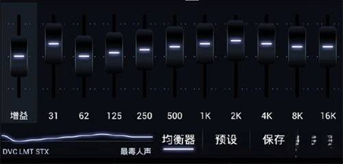 1、首先是增益功能,增益之后设有十个频段,按照从左到右的顺序,依次对应从低音到高音的音频范围。
