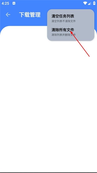 3、在弹出的菜单里,选择清除所有文件的选项,这样就能完成列表和对应文件的清除工作了。