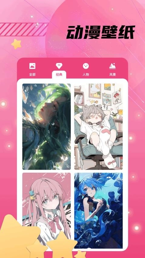 4、进入壁纸页面后,能看到【热门】、【经典】等分类选项。选择经典分类,里面收录了各式各样的精美壁纸,你可以挑选心仪的壁纸进行使用或收藏。