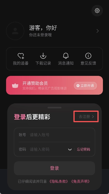 4. 填写账号、密码,然后点击“注册”;