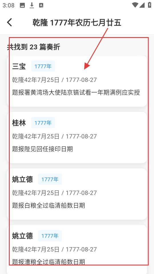 进入乾隆相关页面后,能看到不少【奏折】,挑选自己感兴趣的查看具体内容,体验非常好。