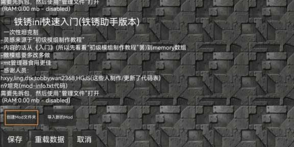 4、要是没找到对应的文件夹,大家可以点击【创建MOD文件夹】这个选项。把文件解压到MOD文件夹之后,在游戏主界面找到【模组】按钮并点击,就能进入MOD加载界面了。接着勾选你想使用的MOD,再点击【重载数据】,之后点击保存就可以了。如果MOD里的代码存在错误,对应的MOD名称下方会出现红色文字提示报错信息。不过这种情况通常玩家是不会碰到的。