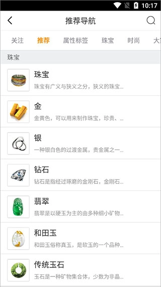 5、选择收录板块后,即可呈现涵盖珠宝、时尚、大家谈、市场等在内的数百种不同类别的板块内容。