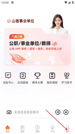 1、打开山香事业单位首页后,点击页面底部的“我的”选项,即可进入个人中心页面。