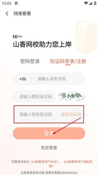 4、点击“获取验证码”按钮,把收到的短信验证码输入到短信验证码输入框中,接着点击“登录”按钮,即可完成账号登录操作。