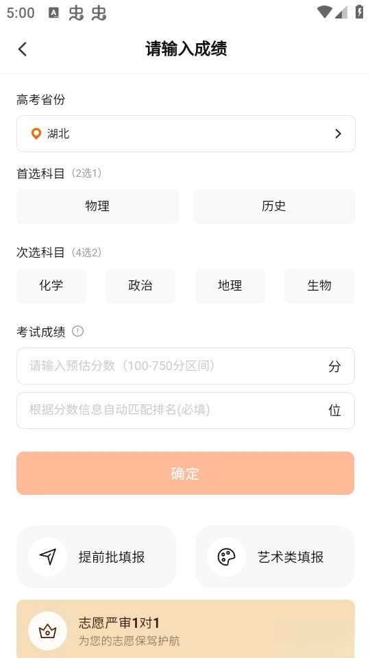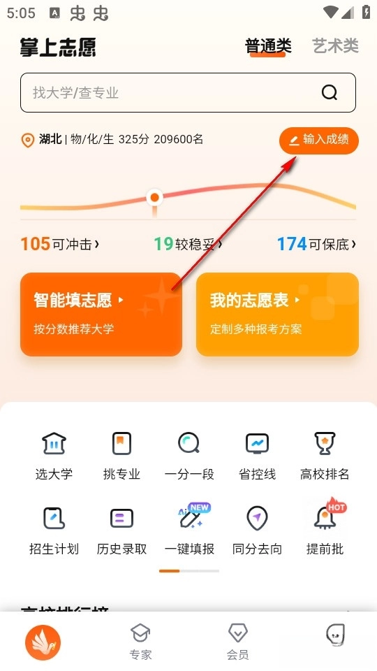 首先我们在首页可以输入自己的高考成绩。