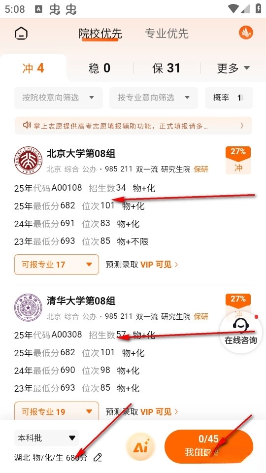 接下来了解列表中的高校,我们就能知晓自己可以填报志愿的大致学校和专业详情了。