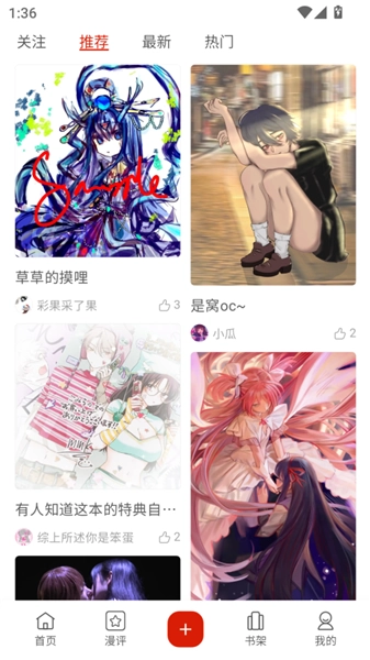 3、这里除了能看漫画,还支持大家进行作品创作,你可以上传自己创作的漫画作品,也能上传绘画图片。
