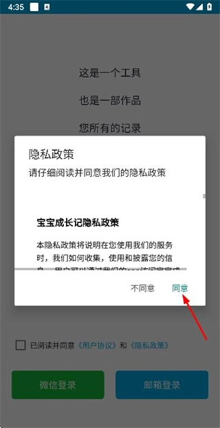 1、点击隐私政策弹窗里的同意按钮,以此完成隐私政策的确认操作。