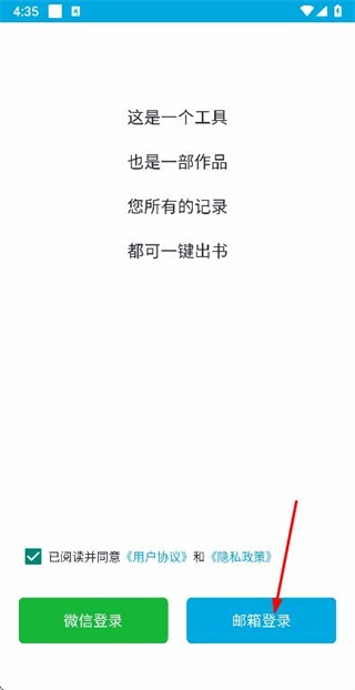 2、在登录选择页面勾选相关协议后,点击邮箱登录的选项,即可进入邮箱登录的页面。