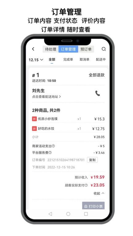 查询方式丰富多样,不仅能查询订单,还能查看顾客评价;订单详情的查询也更为快捷。