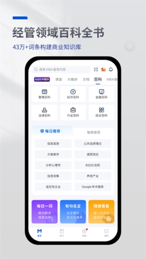 MBA智库百科是专为财经与管理领域的学子及专业人士打造的学习工具,这里汇聚了海量经管知识词条,实时更新行业动态资讯,还提供超千万份实用文档资源且支持免费查阅。此外,更有业界资深专家在线授课,助力用户深化知识理解、提升专业能力,实现高效成长。
