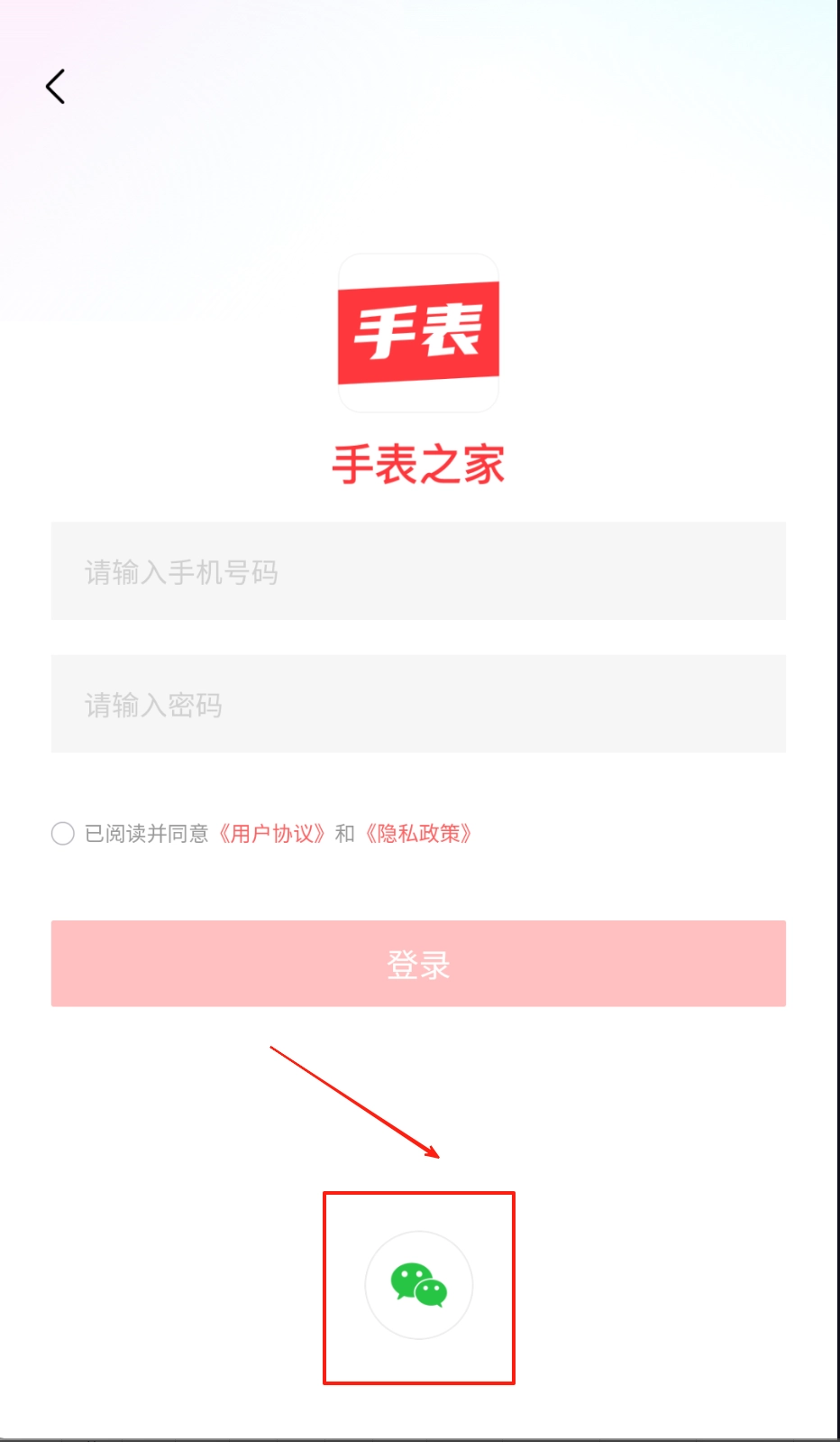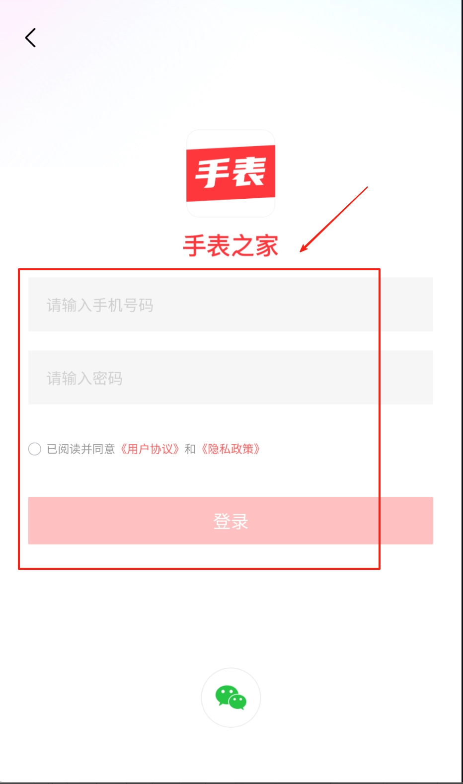 1、启动软件后,顶部呈现“手表之家”的红色LOGO,页面中间位置“账号登录”的黑色提示醒目直观,底部则设有微信登录的快捷入口。