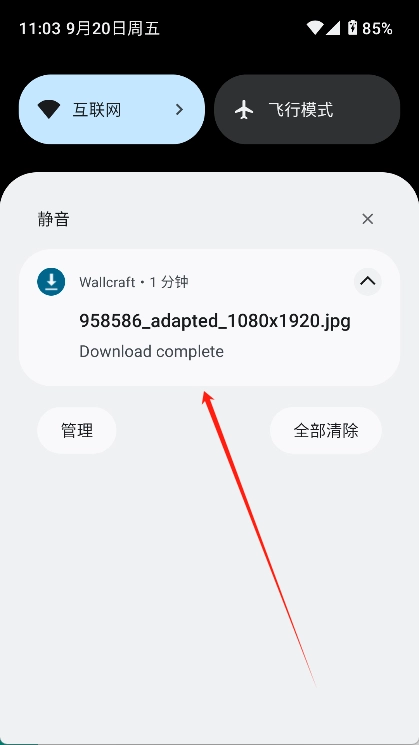 6、接着会显示“正在加载”的状态,等加载完成后,下拉手机的通知栏就能看到精选壁纸,点击它就能跳转到精选壁纸的展示页面了。