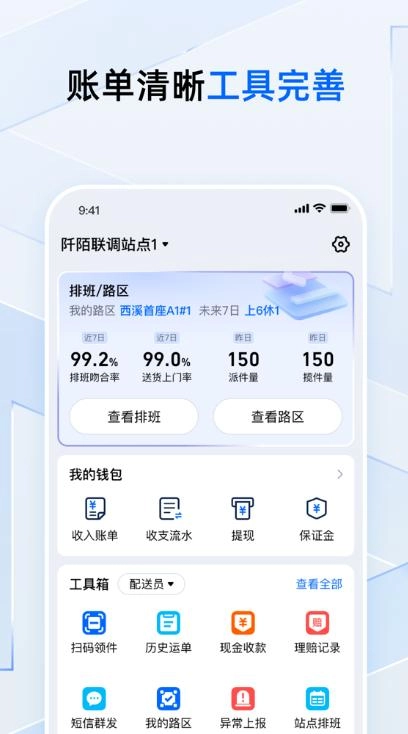 点我达骑手是一款专门面向快递员的移动工作平台,整合了订单管理、扫码录单、电子面单打印以及线上收款等关键功能,助力快递员高效完成揽收、派送等全流程工作,提高日常作业效率。