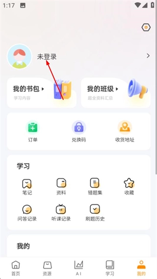 2、进入个人中心页面后,点击未登录的区域,即可跳转至登录页面。