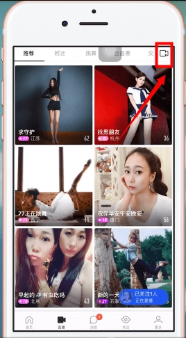 在手机上并登录,点击底端的【直播】,