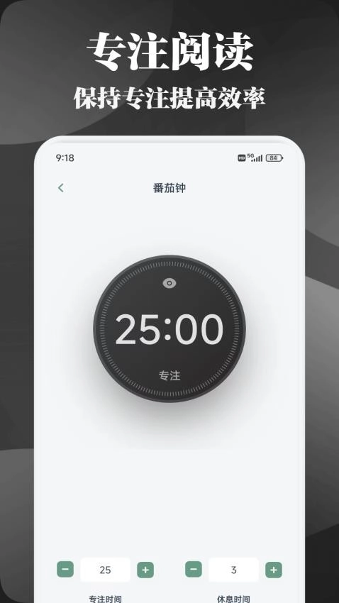 3、专注计时与效率管理:借助番茄钟规划专注阅读的时间区间,助力养成稳定的阅读节奏,提高时间的使用效能。