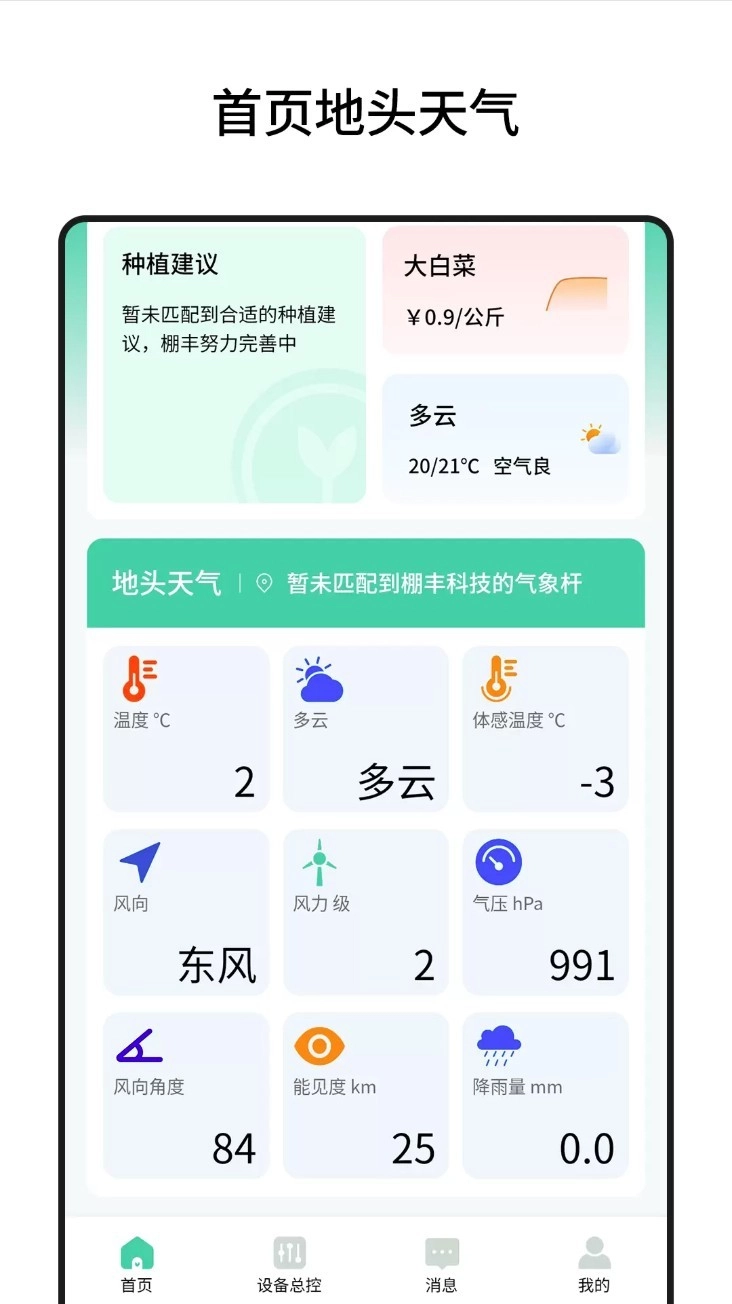 棚丰智能是一款专门面向温室大棚种植场景开发的智能化农业管理软件,能够通过远程指令对棚内温度、湿度、光照等关键环境参数进行调节,借助传感设备实时监测作物生长状态,一旦检测到环境异常或作物生长问题,会第一时间向使用者推送预警提醒。同时,它还持续提供最新的科学种植技术资料与行业实用经验分享,助力用户轻松掌握精细化、科学化的温室管理方式。