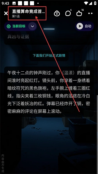 进入作品阅读页面后,即可查看剧情内容,点击顶部区域便能进入作品页选择章节。