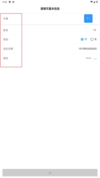 4、进入基本信息填写页面后,需完善【头像】【姓名】【性别】等相关信息,同时设置密码,以此完成账号信息的补充工作。
