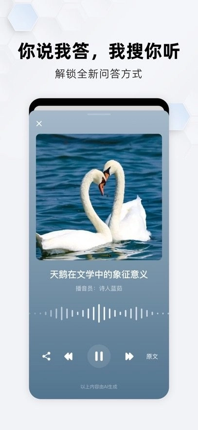 这是一个直接给出答案的搜索引擎,支持文字、语音、拍照、视频等多种搜索形式,无论何时何地都能满足你的搜索需求,为知识插上声音的翅膀,让获取知识的过程变得更简单、更有趣。