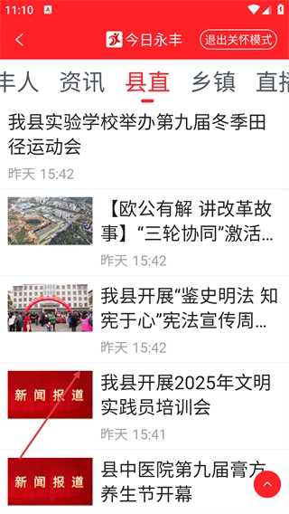4、开启【关怀模式】后,页面会以更清晰的方式展示资讯内容,若需恢复原来的显示模式,可点击【退出关怀模式】按钮操作。