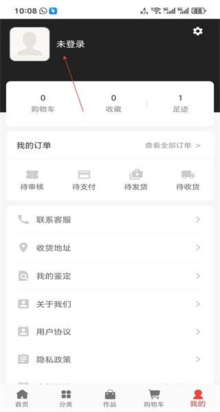 2、进入个人中心页面后,能看到未登录提示以及订单功能,点击未登录区域,即可进入账号登录页面。