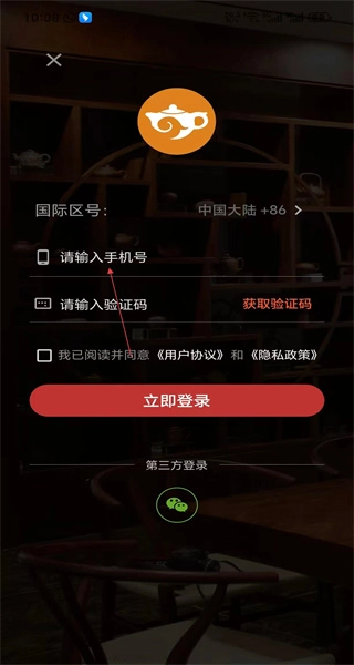 3、进入登录页面后,找到手机号输入框,填写相关信息并勾选协议,随后点击“立即登录”按钮即可完成登录操作。