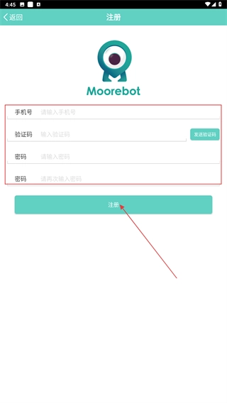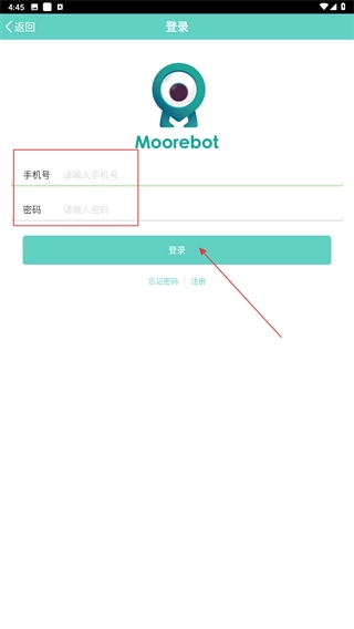 1、在【Moorebot】的启动页面,点击【开启小墨】按钮,即可进入应用的账号登录环节。