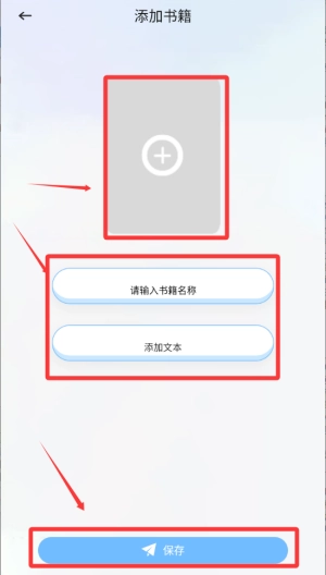 4、先添加背景图,接着输入书籍名称,再添加文本,最后点击底部的保存按钮就可以了。