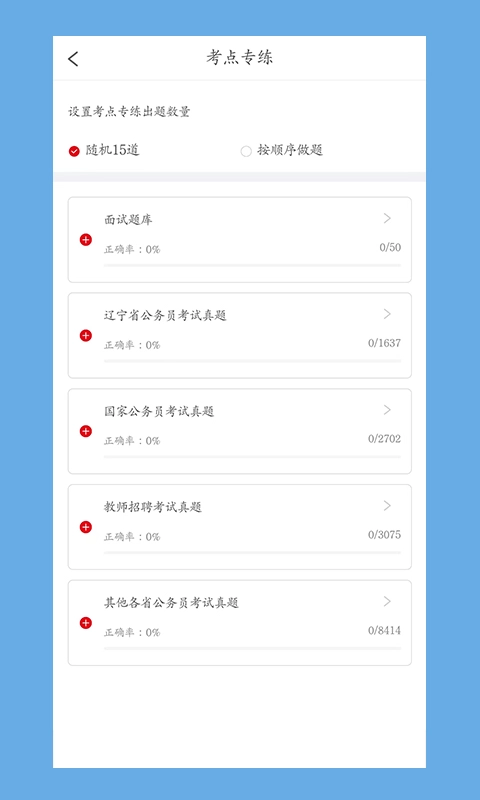 4、同步配备真题与练习题:系统会依据不同类型考试的考点分布、考查频率、题目难度等维度智能组题,助力学员开展专项强化训练,并能根据个人练习数据生成专属学习报告。