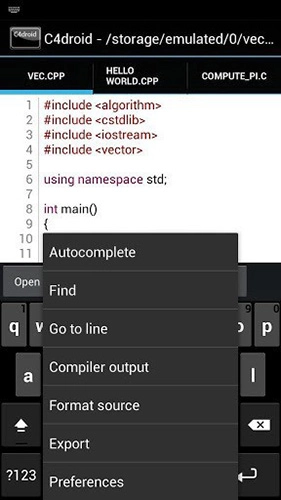 C4droid在首次启动时会提示您安装C++支持,并且会自动将其配置为半自动模式。