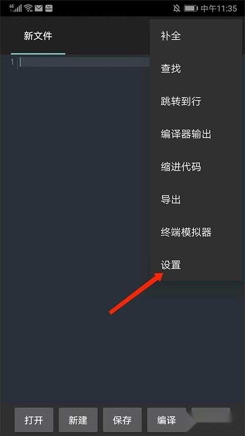 2、选项涵盖补全、查找、跳转到行、导出、设置等功能,选择其中的【设置】项。