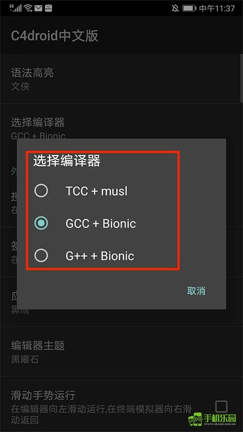 请注意,若打算把C4droid当作C编译器使用,建议优先选择GCC,而非G++。