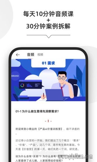 每天10分钟的音频课程全是实用干货,30分钟的案例拆解能帮你深入掌握商业运作的每个环节,还有期末考试可以检验学习效果,欢迎来皮皮鲲站体验!