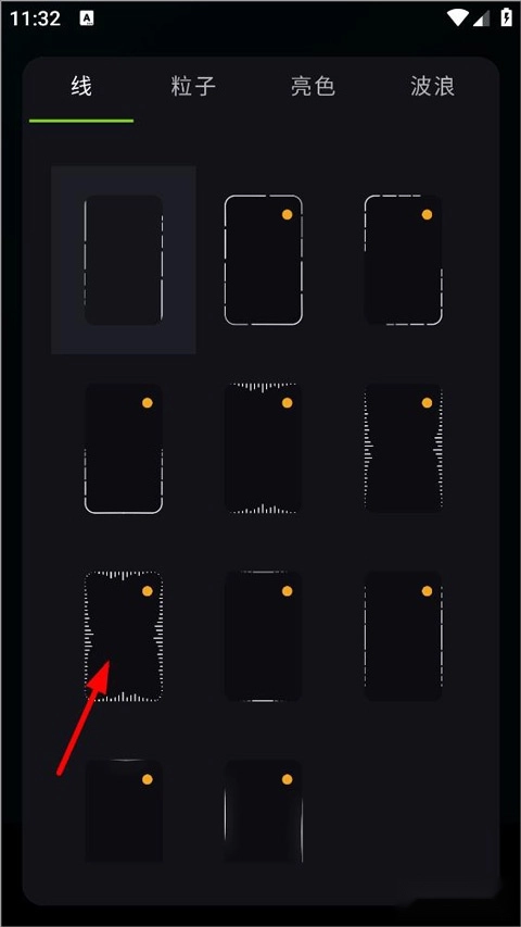 3、用户可对边缘灯的显示样式进行设置,可选样式包括线、粒子、亮色、波浪等。