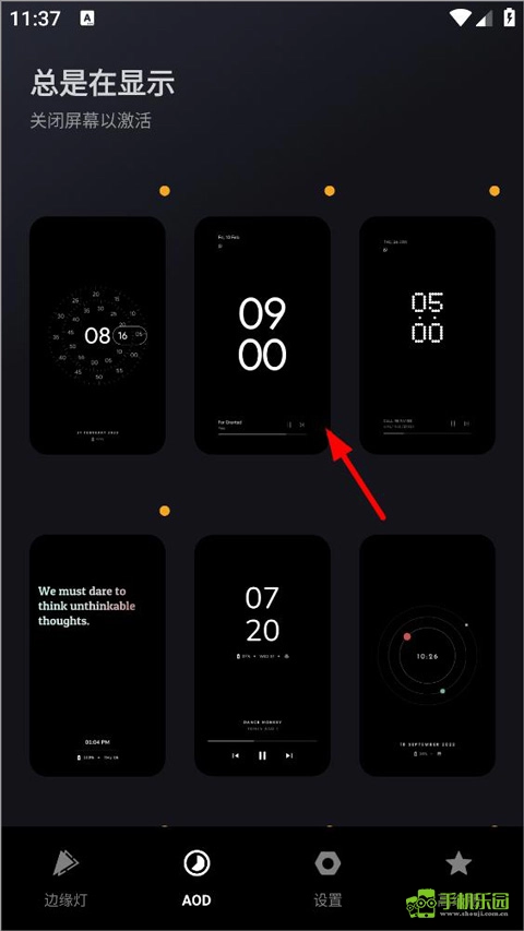 6、完成边缘灯设置后,当用户开启AOD功能,即可在对应页面挑选自己偏好的屏幕显示样式。