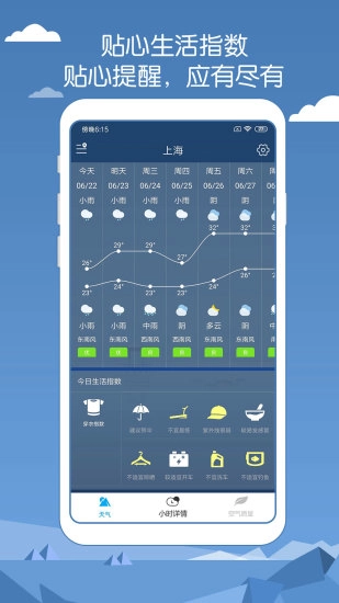 2、未来天气预报:可提供未来一周的天气情况预报,助力用户提前规划行程安排,防止受到恶劣天气的影响。