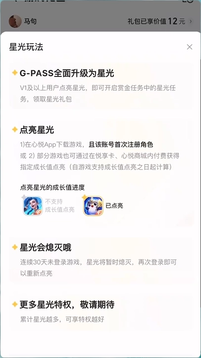 或 2)部分游戏也可通过在悦享卡、心悦商城内付费获取指定成长值来点亮星光(自游戏支持成长值点亮功能之日起计算),不过星光是会熄灭的哦