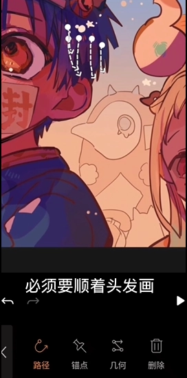 添加流动轨迹时,需特别注意顺着头发的走向来绘制。这能防止打锚点时出现差错,保证流动轨迹自然顺滑,呈现出生动的效果。